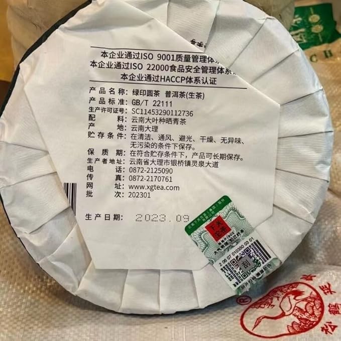 7 pieces, 2500 grams in total. 2023 Xiaguan Green Printing Round Tea, 357 grams of raw tea per cake Yunnan Raw Puer Tea Cake Chinese Pu Erh Black Tea Yunnan Pu er Raw Tea