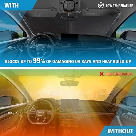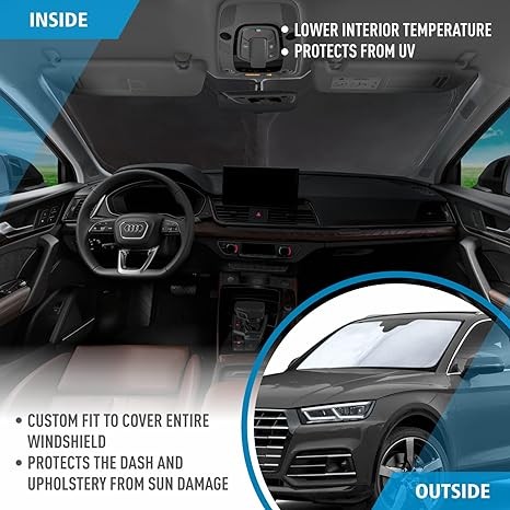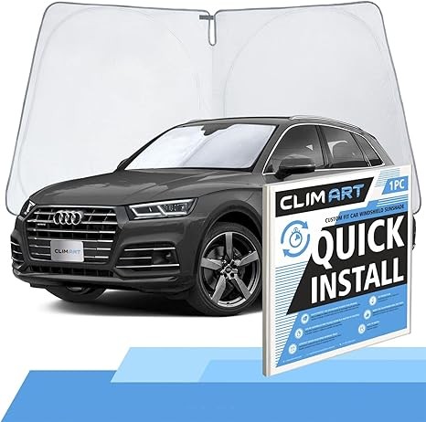CLIM ART Windshield Sun Shade Compatible with Audi Q5 2018-2024 - Custom-Fit Foldable Car Sun Shade - Car Sunshade - Vehicle Sun Protector - Front Auto Windshield Cover, Car Windshield - WS5001