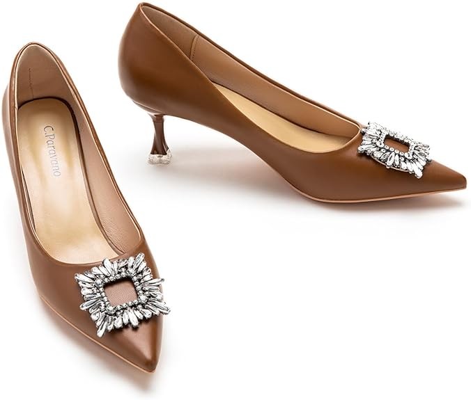 C.Paravano Women's Pumps I Pointed Toe High Heels I Closed Toe Kitten Heel I Comfortable Dress Pump I Leather Wedding Shoes