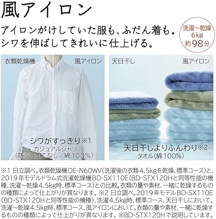 Hitachi BD-SV120HL W Front-Loader WasherDryer, Width 23.6 inches (60 cm), Washing 26.3 lbs (12 kg), Dry 13.4 lbs (6 kg), Left Opening, White, Big Drum, Liquid Detergent, Softener, Automatic Input,