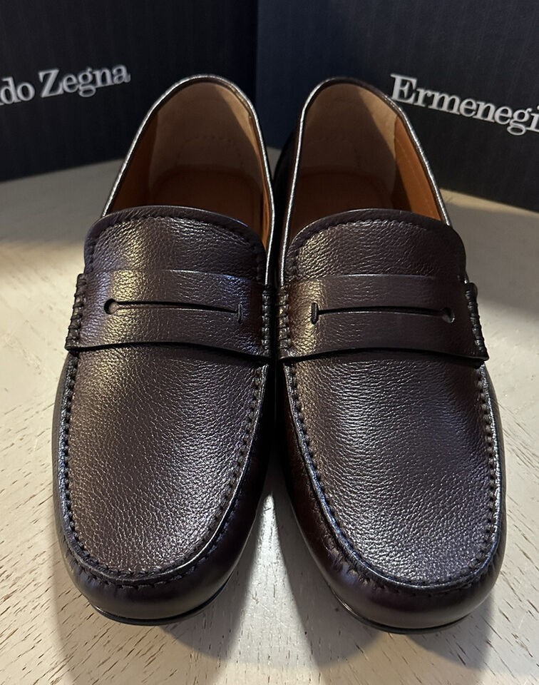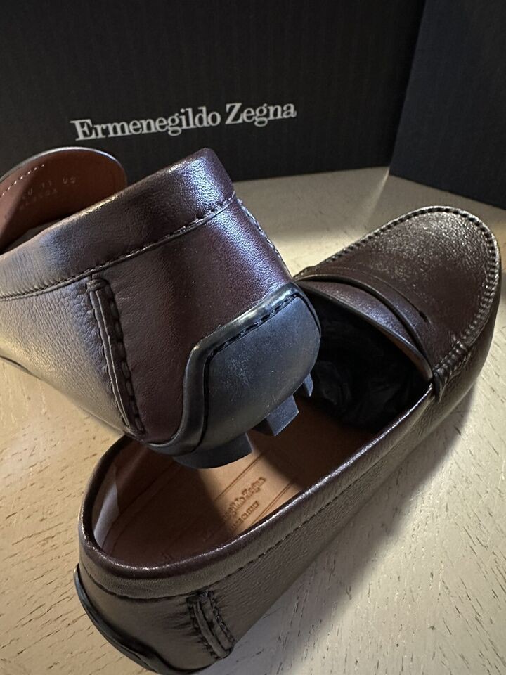 New $660 Ermenegildo Zegna Leather Driver Loafers Shoes Brown 11 US
