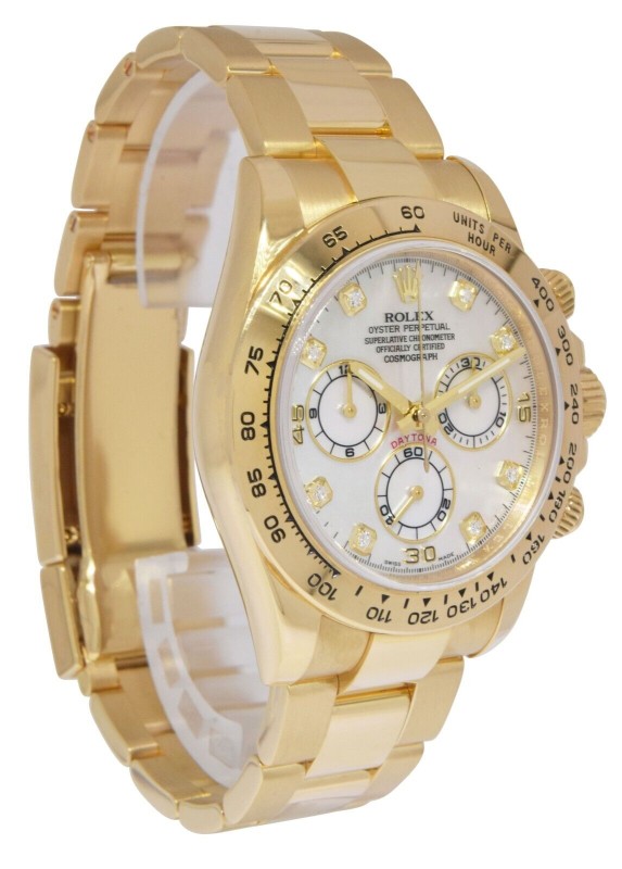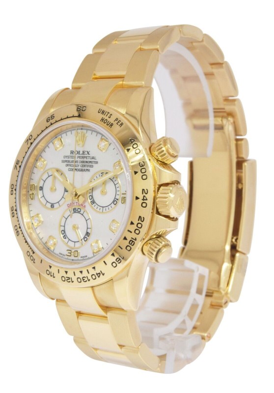 Rolex Daytona Chronograph 18k Yellow Gold MOP Diamond 40mm Watch BP '16 116508